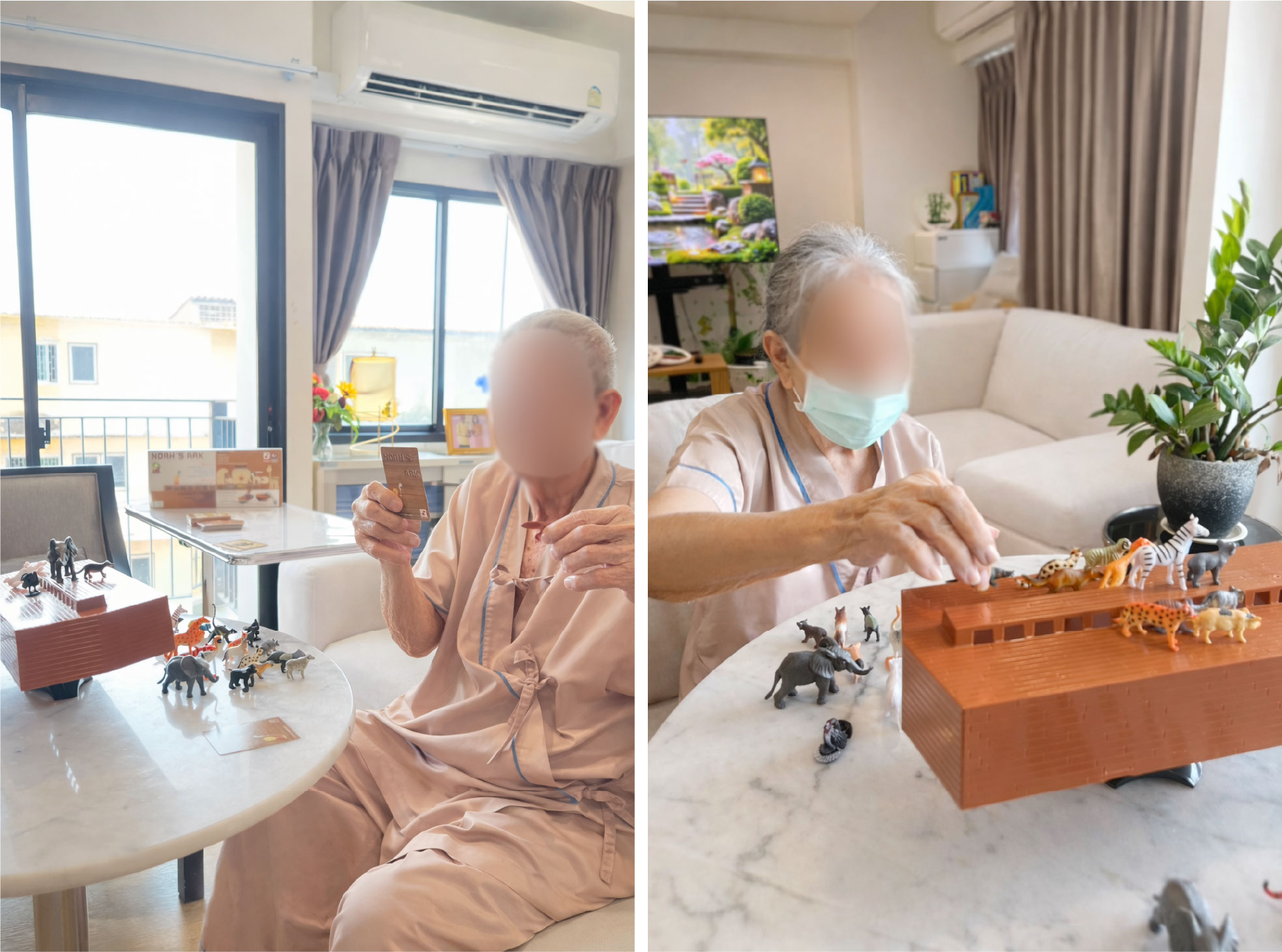 หนึ่งในแนวคิดที่น่าสนใจคือ การนำบอร์ดเกมซึ่งเดิมเป็นของเล่น มาปรับใช้เป็นเครื่องมือสำหรับการฟื้นฟูผู้สูงอายุ โดยเฉพาะบอร์ดเกม “เรือโนอาห์ (Noah’s Ark Board Game)” ที่สามารถนำมาประยุกต์เป็นกิจกรรมบำบัดได้อย่างสร้างสรรค์ บอร์ดเกมฟื้นฟูผู้สูงอายุ โครงการนำร่องจาก Kiddy Kiddo ได้มองเห็นศักยภาพของบอร์ดเกม และต้องการผลักดันให้กลายเป็นกิจกรรมใหม่ที่ช่วยฟื้นฟูผู้สูงอายุในศูนย์ดูแลและโรงพยาบาลทั่วประเทศ